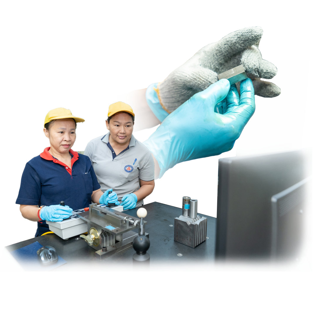 พนักงานในหน่วยงานควบคุมคุณภาพของเราได้รับการฝึกอบรมและฝึกทักษะการใช้เครื่องมือต่าง ๆ เพื่อปรับปรุงการควบคุมคุณภาพ และเพื่อให้เหมาะสมกับลักษณะของชิ้นส่วนต่าง ๆ ระบบของเราได้รับการรับรอง IATF 16949:2016 โดย URS เพื่อบันทึกข้อมูล และรักษาคุณภาพของชิ้นงาน